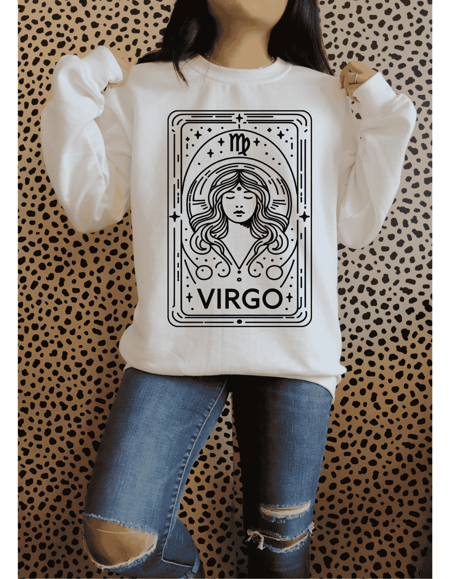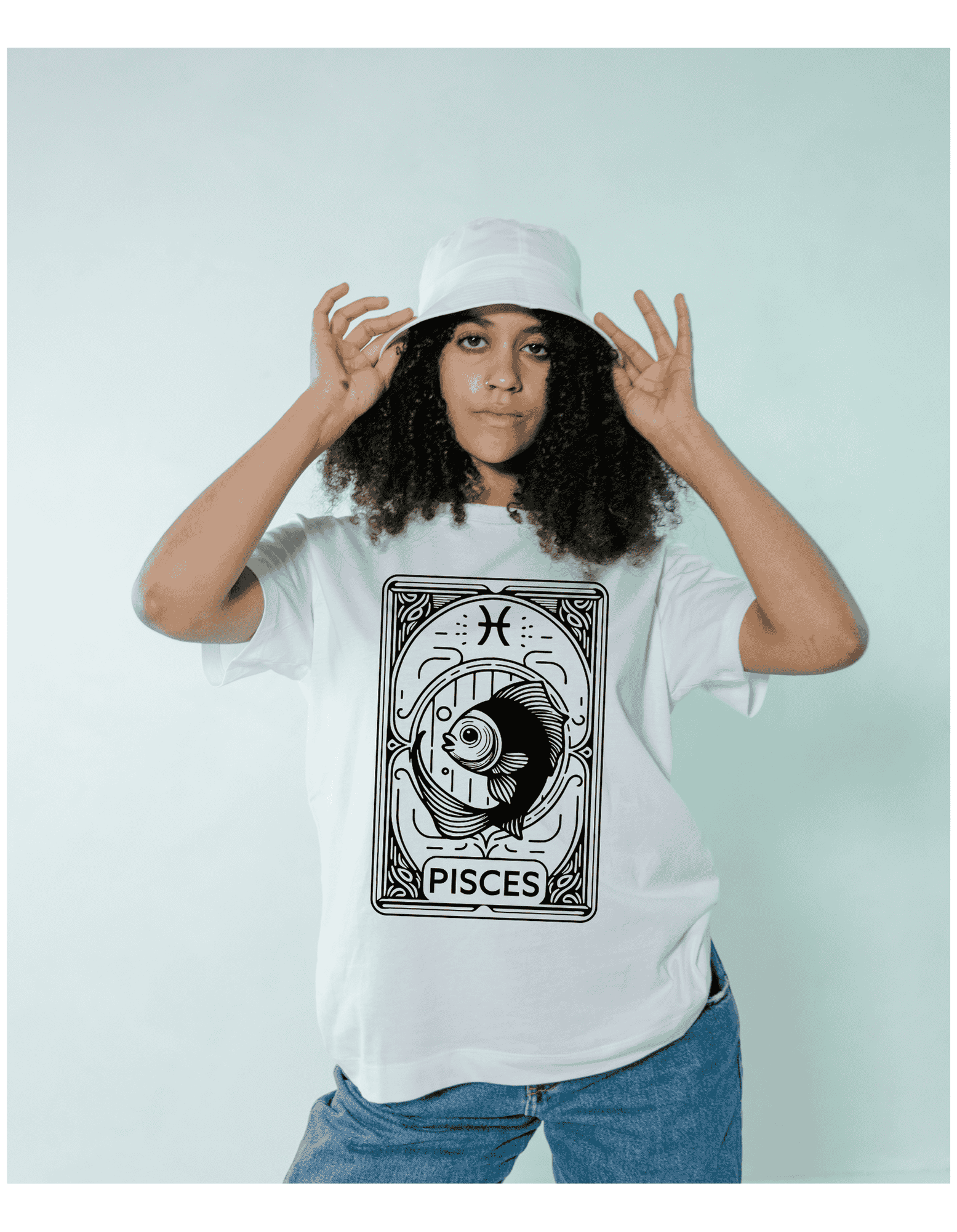 Show off your star sign in style with our Zodiac Tarot Collection. Each design features a mystical tarot-inspired illustration, blending astrology and fashion into one bold statement. The detailed black linework highlights your zodiac symbol with an elegant goddess design surrounded by celestial accents—making it the perfect choice for stargazers and astrology lovers.